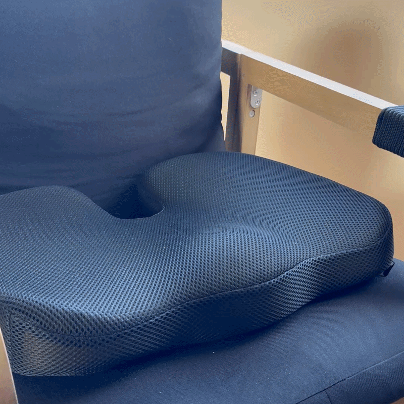 Place the cushion with the gap/cut out toward the back of your chair to reduce pressure at the base of your spine. This design helps distribute your weight evenly, promote better posture, and deliver the full support and comfort the cushion was engineered to provide.